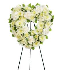 Up to 1 cash back White flowers have a peacefulness and purity to them bringing hope and light during a time of loss. Measures 32H by 21L. White mums carnations Monte Casino blooms and snapdragons on a self-standing easel convey sympathy and remembrance in an elegant way.