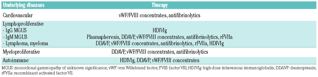 This formulation is administered subcutaneously or by direct intravenous injection. DDAVP is the treatment of choice for type 1 VWD because it can induce release of normal VWF from cellular compartments but the drug can be clinically useful also in other VWD types including acquired von Willebrand syndrome AVWS. O tratamento da doença de von Willebrand tem como principal objetivo elevar as concentrações plasmáticas de proteína deficiente quando ocorrerem as manifestações hemorrágicas ou até mesmo antes da realização de procedimentos cirúrgicos e invasivos por meio da infusão de um medicamento chamado DDAVP que eleva os níveis de fator FVW e reduz as chances de sangramento.