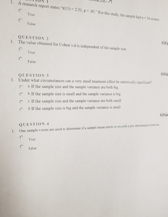 With a large sample and a small standard deviation c. Under what circumstances can a very small treatment effect still be significant. Under what circumstances can a very small treatment effect still be significant.